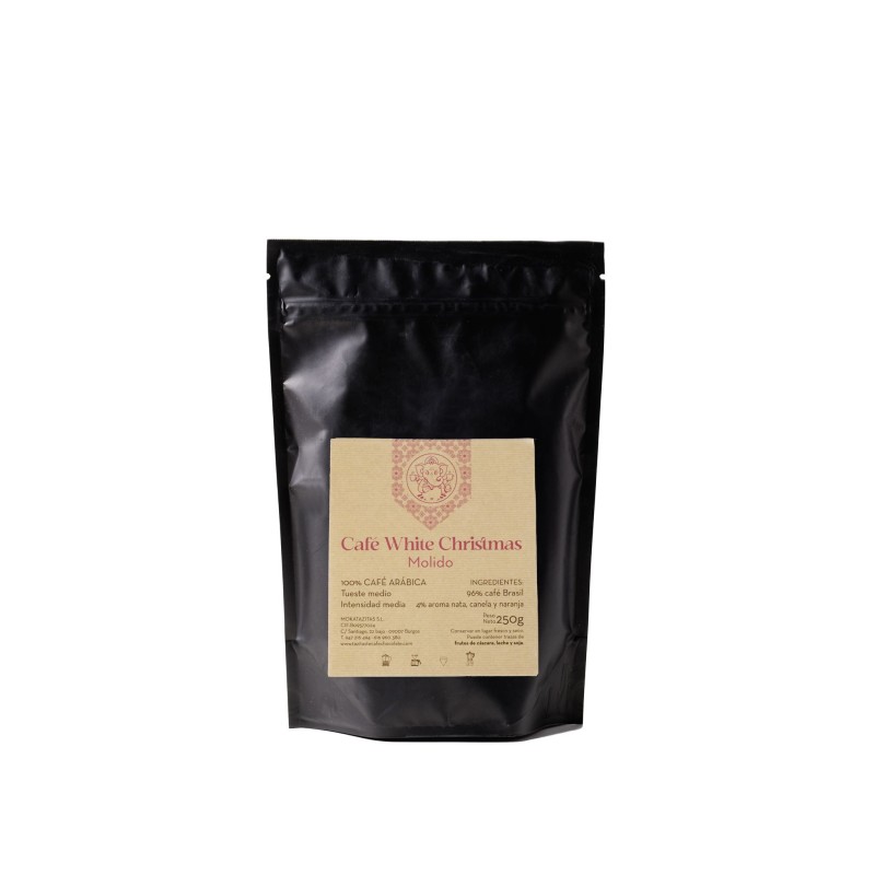Cafe de White Christmas. Café aromatizado 100% arábica de origen Brasil, con un tueste medio e intensidad media.