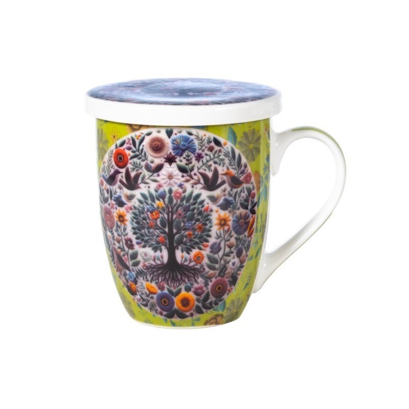 Taza de infusión de porcelana de 300 ml de capacidad, para preparar tus infusiones favoritas, ya que posee un filtro de acero inoxidable de gran duración y de fácil limpieza, además de tapa.