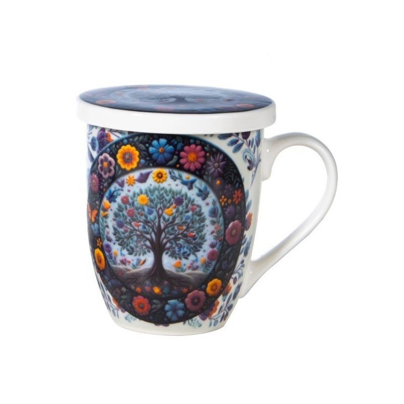 Taza de infusión de porcelana de 300 ml de capacidad, para preparar tus infusiones favoritas, ya que posee un filtro de acero inoxidable de gran duración y de fácil limpieza, además de tapa.